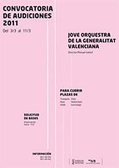 Llistats per instruments amb indicació de data, hora i ordre d’intervenció en les audicions per formar part de la Jove Orquestra de la Generalitat Valenciana.
