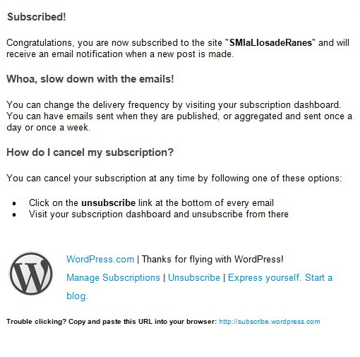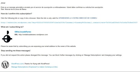 2. Rebreu un correu on heu de confirmar la subscripció, clicant sobre l’adreça que apareix en blau.
