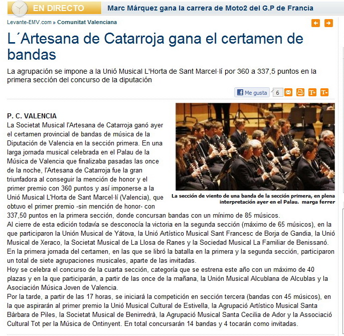 La versió digital del Levante “al cierre de la edición de ayer sábado desconocía el resultado de la segunda sección del Certamen Provincial”. Però la versió impresa «si que si que ho sabia!!», ÒSTIA!!!!, i ve publicat al Levante de huí, que hi havia guanyat Benissanó.