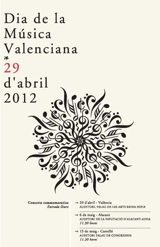 La Generalitat commemora el Dia de la Música Valenciana amb tres concerts, a l’Auditoridel Palau de les Arts aquest diumenge 29 d’abril, a l’Auditori ADDA d’Alacant (6 de maig) i a l’Auditori Palau de Congressos de Castelló (13 de maig), patrocinats per la Conselleria de Governació i organitzats per l’Institut Valencià de la Música (IVM) amb la col.laboració de la Federació de Societats Musicals de la Comunitat Valenciana.
