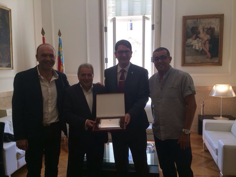 Aquest matí a la Diputació de Valencia ha tingut lloc l’encontre entre els representants de la nostra Societat Musical, Jose Javier Carreres (president) i Paco Sanchez Roca (director) junt el representant del nostre poble Evarist Aznar (alcalde). Han estat rebuts per Alfonso Rus president de la Diputació, qui ha felicitat tant als músics, als nostres representants i al poble de la LLosa de Ranes pel premi aconseguit en la passada edició del Certamen Provincial. A més de l’ehorabona, ens ha desitjat sort per a la participació de la nostra Banda al Certamen de la Comunitat.