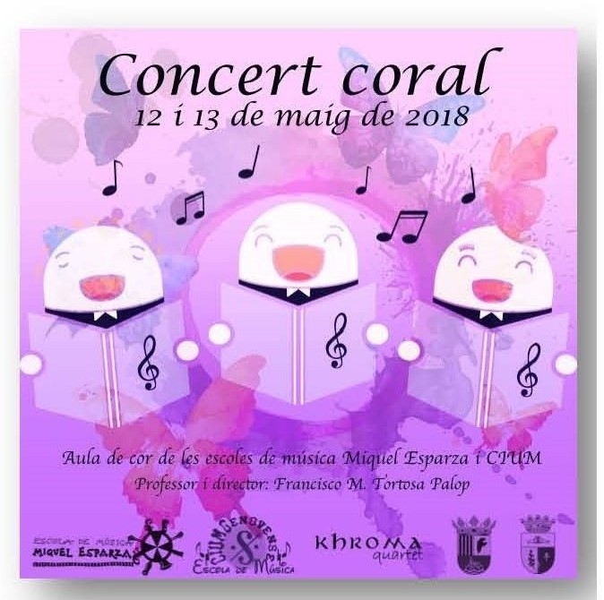 Informació sobre el concert coral conjunt entre els alumnes de l’assignatura de cor de les dos escoles de música, la Miguel Esparza de la Llosa de Ranes i la CIUM del Genovés.