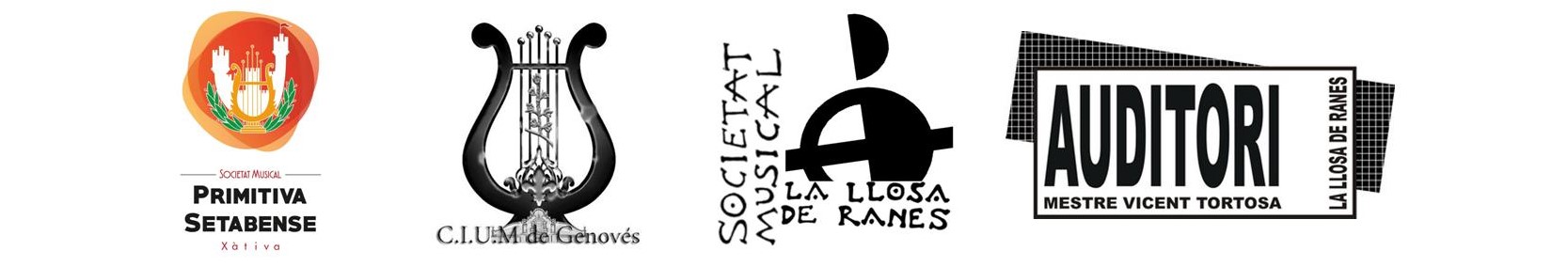 Bandes Joves que participen en el Festival: la Primitiva Setabense de Xàtiva, la CIUM de Genovés i la Societat Musical de la Llosa de Ranes.