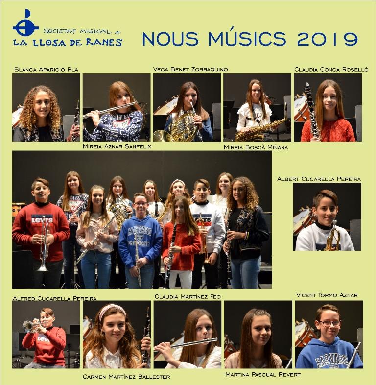 Aquests són els 11 joves músics que passaran a formar part d’aquesta gran família que es la nostra Societat Musical i que seran presentats com a membres de la Banda “Gran”el proper dissabte 30 de novembre al Concert de Santa Cecília, el qual, tindrà lloc a les 19:00 a l’auditori municipal.