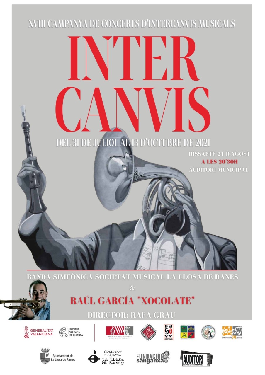 El públic assistent tindrà garantida una hora de molt bona música i a ben segur que gaudeix d’escoltar tant a la nostra banda com al trompeta solista Raül Garcia «Xocolate» qui destaca per la seua qualitat tècnica i virtuosística. Natural de La Pobla Llarga, des de ben menut es va iniciar amb la trompeta a la banda del seu poble (Unió Musical de La Pobla Llarga), va continuar els seus estudis al Conservatori Professional «Mestre Vert» de Carcaixent i va completar la seua formació realitzant cursos amb Maurice André. Mauric Benterfa, Eric aubier, Thomas Stevens, P. Thibeau, Manuel López, Vicent Campos, José Ortí, Wayne Bergeron, Allen Vizzutti, Eric Miyashiro i Phillip Mossman. Així, ha format part de diverses agrupacions com la Sedajazz Big Band, Big Band Casino de Godella, La Nova Big Band, Orquesta Plateria, Orquesta Montecarlo, Sonora Latina, Metallon Brass Band i Valencia Brass Band. També ha compartit escenari amb importants artistes com Perico Sambeat, Jesús Santandreu, Ramón Cardó, Ximo Tébar, David Pastor, Jose Sibaja, Dani Miquel, Pep Botifarra, Presuntos Implicados, Carlos Baute, Francisco, Rosa López (OT), Niña Pastori i Pablo Alborán… Per finalitzar, com a solista internacional a l’any 2018 va començar una gira per Europa estrenant «Chocolat», composició que li va dedicar el seu amic compositor Carlos Pellicer i que també va interpretar al desembre del 2018 junt a la Societat Musical de La Llosa de Ranes, Raül Benavent i Esaú Borredà (percussionistes) a l’Auditori «Mestre Vicent Tortosa Terol».