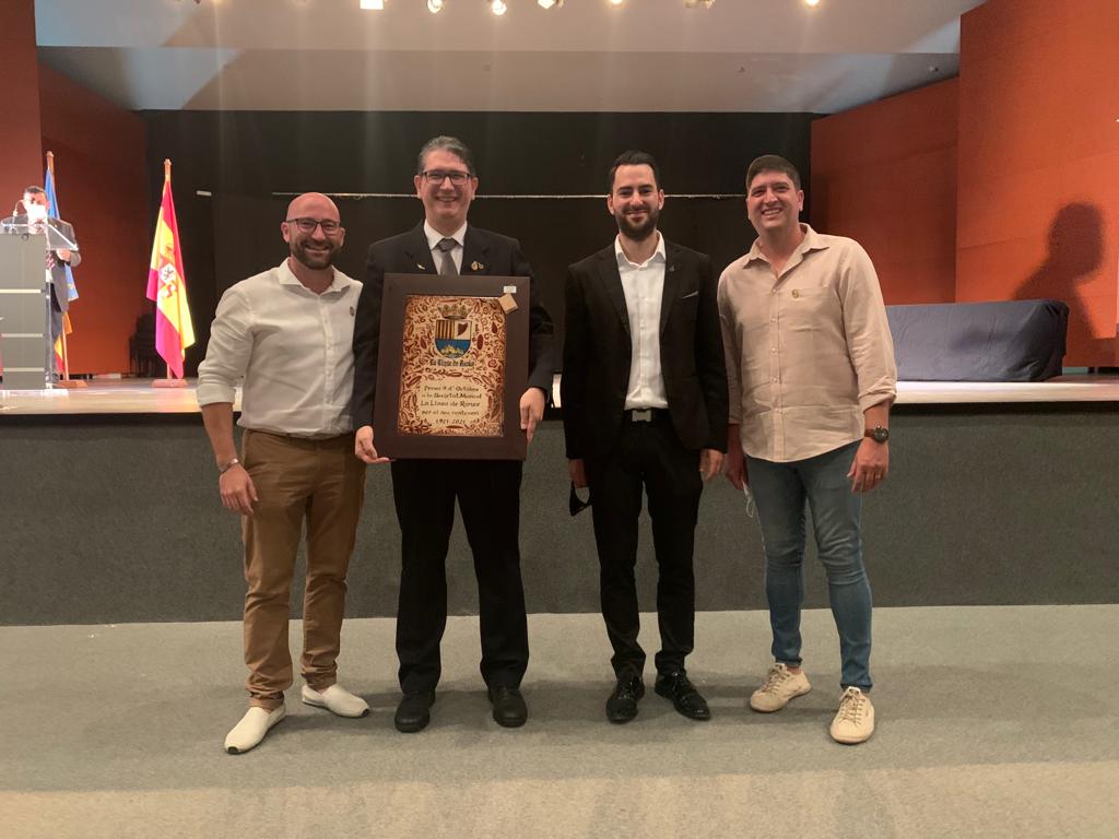 Aquest any i coincidint amb el Centenari de la nostra entitat, l’Ajuntament va decidir premiar a la nostra Societat Musical per la seua importància al llarg de tot este temps en la nostra localitat a nivell educatiu, social, cultural i musical. Abans de fer l’entrega del premi es va projectar un vídeo de uns 4 minuts amb les imatges més representatives d’estos cent anys. Davant la importància del premi a tota una trajectòria, es va invitar a l’acte als anteriors presidents de l’associació. Desiderio Contreras, Andrés Gamazo i Federico Esteve van pujar a l’escenari junt a l’actual president José Javier Carreres i van rebre de mans de l’alcalde N’Evarist Aznar Teruel el reconeixement de l’Ajuntament i del poble de La Llosa de Ranes.