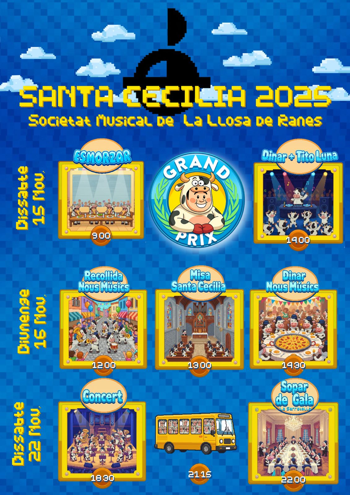 Arriba el mes de novembre, i amb ell, una de les cites més esperades per tots els membres i simpatitzants de la nostra banda: la celebració de Santa Cecília, patrona dels músics. Seran uns dies plens de música, germanor i molta diversió, on també donarem la benvinguda oficial als nous membres que enguany s’incorporen a la nostra gran família musical.